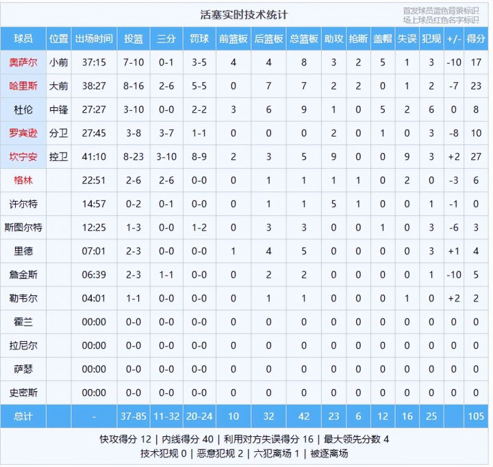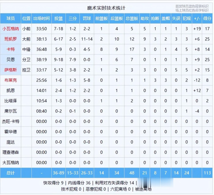 洗码金沙赌博数据:班凯罗25分12板9助3断2帽、贝恩25分7板、小瓦格纳17分5板5助、萨格斯15分3板3助、卡特14分17板3助、布莱克8分1板1助3断3帽、凯恩7分;康宁汉姆27分5板9助、哈里斯23分7板2助2断、奥萨尔17分8板3助2断5帽、罗宾逊10分2助、杜伦8分9板1助5帽、格林6分、詹金斯5分2板、里德4分5板